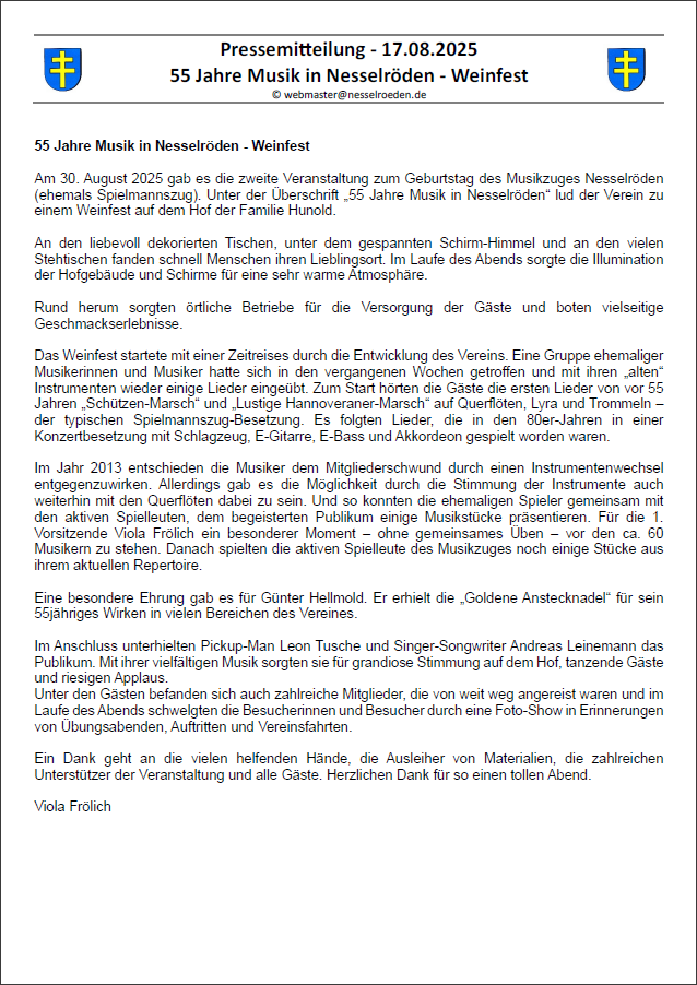 Hier findet ihr Berichte der Nesselröder Verbände & Vereine, allgemeine Berichte und Presseinformationen rund um unseren Ort Nesselröden.